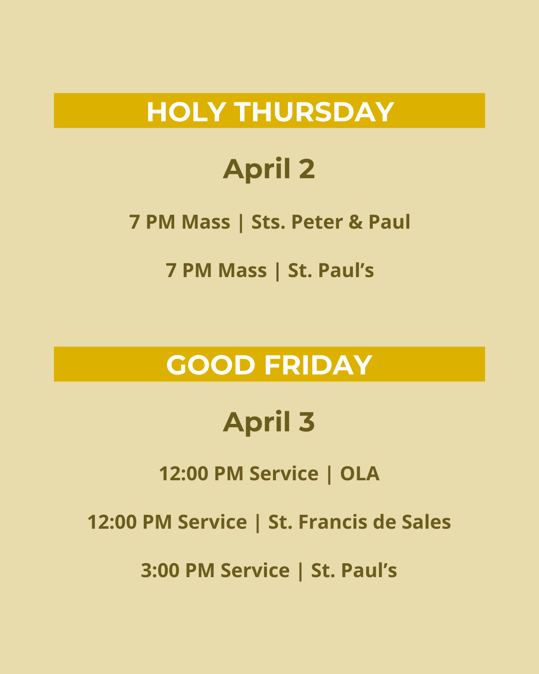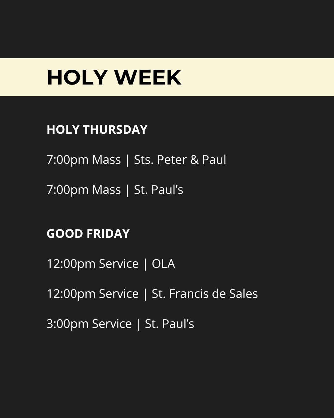 LENT & HOLY WEEK SCHEDULE