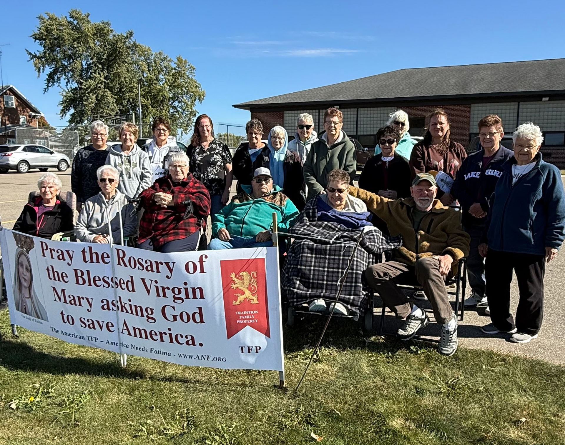 Each year on the second Saturday in October, a public Rosary rally is held outside Sts. Peter and Paul Church in Elrosa. The community prays for the repentance and conversion of our nation, asking God to bless and save America through the Rosary of His Most Holy Mother. Shown in the picture are faithful friends who gathered outside Sts. Peter and Paul Church this past Saturday to pray the Rosary for God’s blessing on our country.